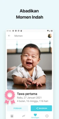 Abadikan setiap momen berharga yang tak akan terulang. Buat jurnal harian, simpan foto-foto indah, dan catat setiap tonggak perkembangan penting seperti menggenggam, merangkak, hingga langkah pertama. Pelacak Gigi hadir untuk mendokumentasikan pertumbuhan gigi si kecil.