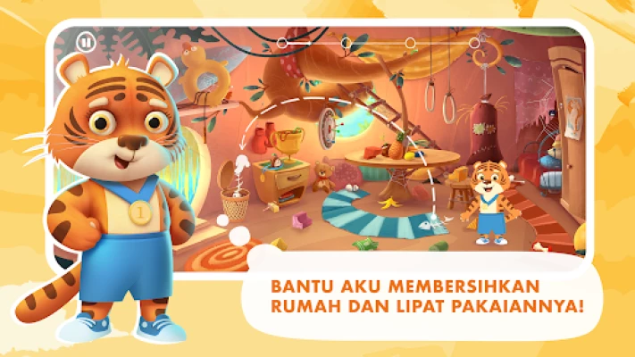 Dirancang khusus sebagai pengalaman belajar yang menawan untuk anak-anak, **Jungle town** mengajak si kecil untuk membantu teman-teman gajah menyelesaikan misi ulang tahun yang manis. Bergabunglah dengan gajah kecil untuk mendekorasi ruangan dan menghias kue ulang tahun, atau bantu anak harimau bersemangat mencari kado tersembunyi. Dengan monyet, Anda bisa menumbuhkan bunga-bunga indah, sementara landak membutuhkan bantuan Anda untuk menjahit kemeja cerah. Jangan lewatkan kesempatan merakit sepeda unik bersama rakun atau memasak hidangan lezat dengan beo. Setiap aktivitas bukan hanya permainan, melainkan kesempatan berharga untuk menjelajahi kreativitas dan pemecahan masalah.